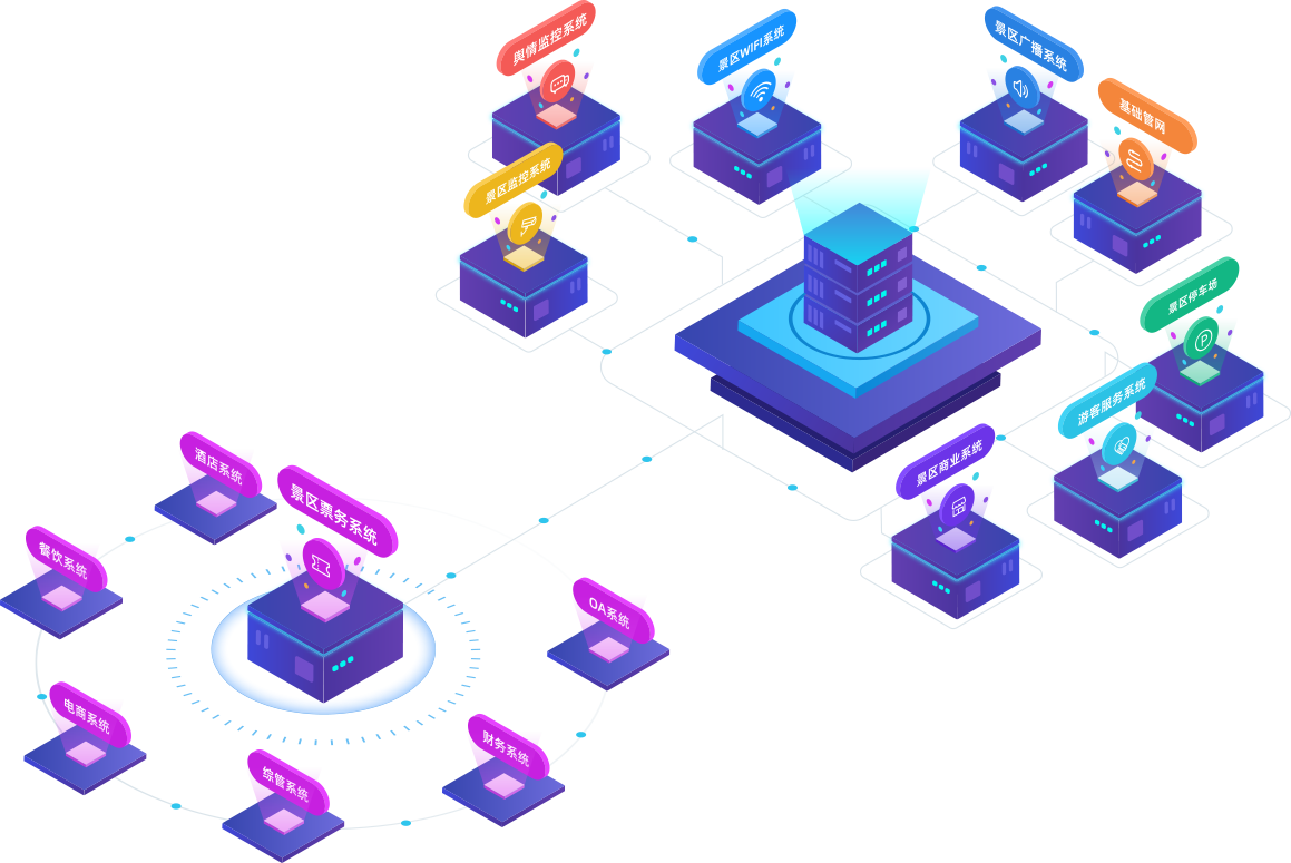 將景區(qū)基礎(chǔ)數(shù)據(jù)作為 貫穿數(shù)據(jù),財務(wù),業(yè)務(wù)的主線,打破系統(tǒng)之間壁壘,數(shù)據(jù)之間的孤島,實(shí)現(xiàn)各子系統(tǒng)數(shù)據(jù)融合互通。